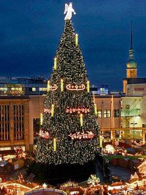在多特蒙德的圣誕市場,有一棵身著節(jié)日盛裝圣誕樹,它身高45米,當(dāng)然這棵樹也不是自然生長的,而是由1700棵云杉組合而成。
