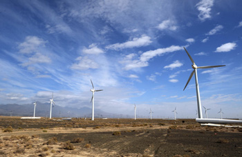 新疆達坂城風區(qū)的風力發(fā)電機群 記者 王菲