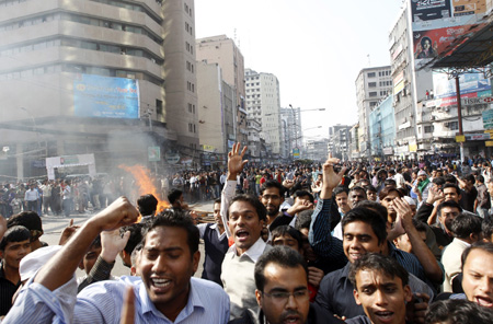 孟加拉國達卡股票交易所主要指數(shù)10日暴跌9%以上,單日跌幅創(chuàng)下該國股市創(chuàng)立55年來新高,監(jiān)管機構(gòu)被迫停止股票交易,關(guān)閉兩大股票交易所。關(guān)閉股市的消息傳出后,憤怒的投資者聚集到達卡股票交易所門前舉行了抗議活動,他們?nèi)计鸹鸲、封鎖交易所附近的道路,并呼喊口號,指責股票交易商和經(jīng)紀人操縱股價的欺詐行為。對于股市的連續(xù)下跌,該國證券交易委員會官員表示,目前尚不清楚原因。據(jù)悉,孟加拉國政府向達卡股票交易所附近加派了警力和快速反應(yīng)部隊。