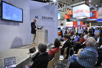 全球超級計算機匯聚美國新奧爾良。2010年11月16日,在美國路易斯安那州新奧爾良舉行的超級計算展覽會上,人們聽取微軟公司舉辦的講座。記者 張軍