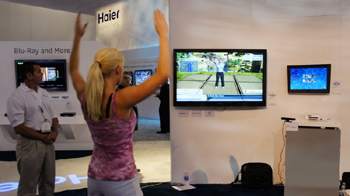 在海爾展區(qū),我們可以看到全球首臺(tái)人機(jī)互動(dòng)智能電視,升級(jí)版的實(shí)現(xiàn)電源與外接設(shè)備“全無線”的3D LED“無尾”電視,具有無線充電功能的“無尾”筆記本電腦和“無尾”手機(jī)等一系列亮點(diǎn)紛呈的創(chuàng)新產(chǎn)品。其中,海爾全球首臺(tái)人機(jī)互動(dòng)智能電視成為電視展區(qū)最耀眼的明星。