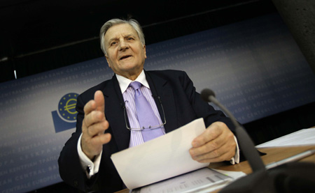 歐洲央行行長特里謝13日在德國法蘭克福的總部表示,維持1%的利率水平不變。他還指出,最新的數據表明,歐元區(qū)的復蘇勢頭已經形成,歐元區(qū)經濟面臨著短期的通脹壓力,而長期通脹仍需要密切監(jiān)測。當天,英國央行也宣布維持利率在0.5%不變。