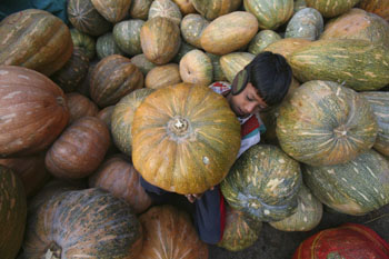 2010年12月3日,一名男孩在印度北部城市昌迪加爾的一家蔬菜批發(fā)市場(chǎng)內(nèi)搬運(yùn)南瓜。2010年新興和發(fā)展中經(jīng)濟(jì)體的經(jīng)濟(jì)復(fù)蘇步伐明顯快于發(fā)達(dá)經(jīng)濟(jì)體,特別是以“金磚四國(guó)”——中國(guó)、印度、巴西、俄羅斯為代表的新興經(jīng)濟(jì)體的國(guó)內(nèi)生產(chǎn)總值增長(zhǎng)率遠(yuǎn)高于美、日、英和歐元區(qū)內(nèi)的發(fā)達(dá)經(jīng)濟(jì)體,成為推動(dòng)世界經(jīng)濟(jì)復(fù)蘇與增長(zhǎng)的重要力量。新華社發(fā) |