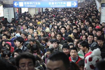 2月17日,從下午五點(diǎn)四十開始,北京地鐵前門站的客流量達(dá)到每十五分鐘7500人,已達(dá)到該站最高通行能力。馬馺