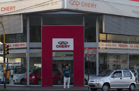日前,在阿根廷首都布宜諾斯艾利斯,奇瑞索馬克汽車公司的一家門店正在營業(yè)。由于阿根廷政府加強(qiáng)對(duì)進(jìn)口產(chǎn)品的限制,由中國、阿根廷和烏拉圭三方合資的奇瑞索馬克公司在烏拉圭生產(chǎn)的奇瑞汽車向阿根廷出口受阻,影響了奇瑞汽車在阿根廷市場的銷售。