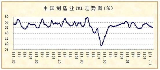 2011年2月份,中國物流與采購聯(lián)合會發(fā)布的中國制造業(yè)采購經理指數(shù)(PMI)為52.2%,環(huán)比回落0.7個百分點,回落幅度較上月明顯縮小。雖然環(huán)比回落,但比去年同期仍回升0.2個百分點。顯示當前經濟增長仍處在平穩(wěn)適度的增長區(qū)間。