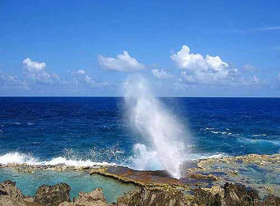 天寧島與塞班島隔著一條世界最深的馬里安納海溝,與塞班的繁華相比,這里多了一份寧靜。由于天寧島是二戰(zhàn)時期美軍往日本發(fā)射原子彈的地方,參觀原子彈發(fā)射、二戰(zhàn)時日軍根據(jù)地等遺址是來這里旅游的必選項目。除此以外,位于天寧島東南端的噴洞,被列為世界五大奇景之一,是歷經(jīng)百萬年海浪沖擊而形成一整排的大小洞穴,潮水會從洞穴中噴出。風(fēng)浪大時潮水噴起的高度可達(dá)20英尺,相當(dāng)壯觀。而在天寧島的西北端,還有一片神奇的沙灘。傳說當(dāng)流星墜入了太平洋中變成星星沙,找到八角星星沙的人,還會愿望成真。
