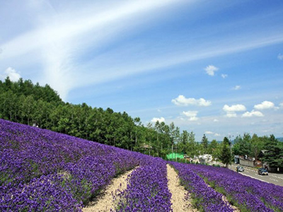 “美瑛拼圖之路”就位于上富良野的四季花丘農(nóng)場:白雪融化后,美瑛一片生機盎然,迎春花、薰衣草、向日葵,還有玫瑰、香草、串紅等按時按節(jié)地競相開放,花田里紅的、黃的、紫的,組成油畫般美麗的自然拼圖。夏天的美瑛,薰衣草最為盛放,如夢如畫,使人流連忘返。中富良野的富田農(nóng)場里,不論是薰衣草和矢車菊、虞美人、薄荷,滿天星,高雪輪或是小麥穗等,豐富多彩的色系誘惑全部的視覺感官。