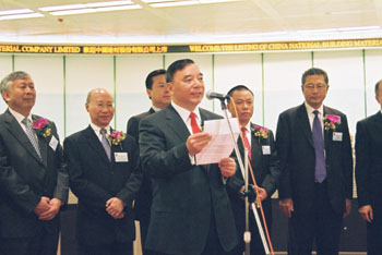 圖為宋志平在中國建材股份有限公司香港上市時(shí)發(fā)言