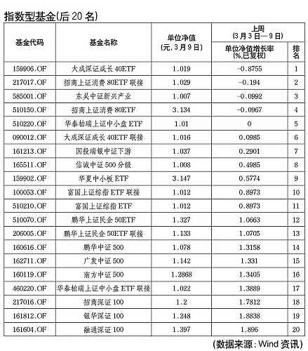 大成深證成長40ETF"榮登"本周最差收益指數(shù)型基金榜首