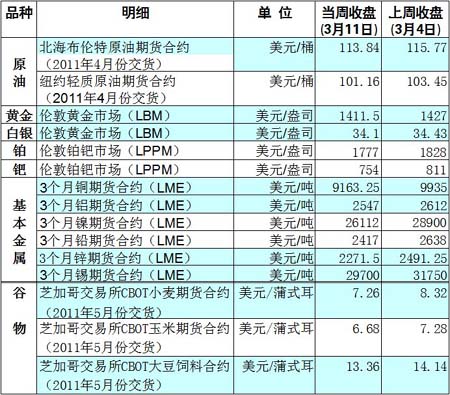 國際大宗商品期貨價格明細(xì)表[2011-03-14]