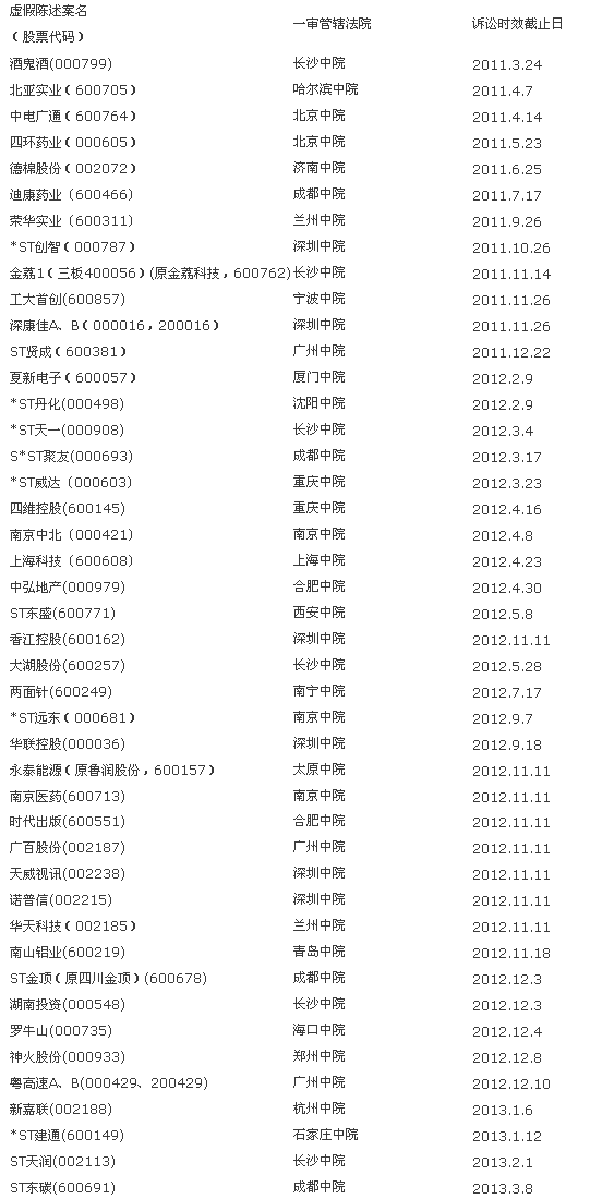 《可訴虛假陳述民事賠償案件一覽表》