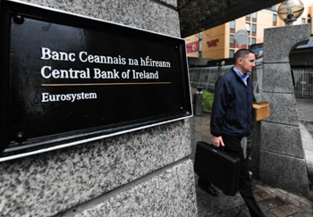 希臘首先爆發(fā)的歐洲主權(quán)債務(wù)危機(jī)以來,嚴(yán)重沖擊歐元穩(wěn)定和歐元區(qū)經(jīng)濟(jì)復(fù)蘇。去年11月,債臺(tái)高筑的愛爾蘭也不得不接受外部援助。圖為在愛爾蘭首都都柏林,一名男子離開愛爾蘭中央銀行。新華社記者