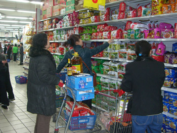 顧客在北京家樂福超市內(nèi)選購康師傅方便面。記者 殷麗娟 攝 |