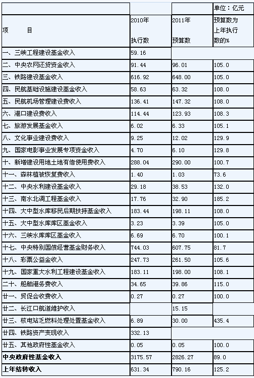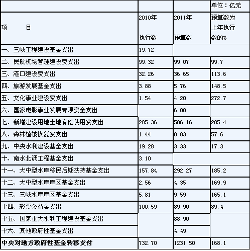 關(guān)于2011年中央政府性基金收支預(yù)算的說(shuō)明