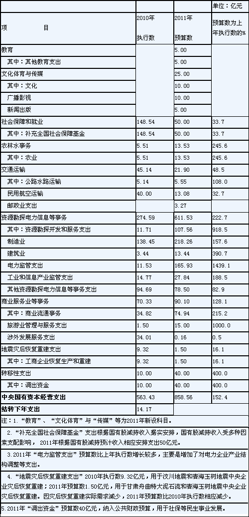 關(guān)于2011年中央國有資本經(jīng)營預(yù)算的說明