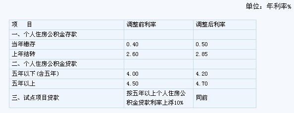 一、從2011年4月6日起,上調(diào)個人住房公積金存款利率。當(dāng)年歸集的個人住房公積金存款利率上調(diào)0.1個百分點,由0.40%上調(diào)至0.50%;上年結(jié)轉(zhuǎn)的個人住房公積金存款利率上調(diào)0.25個百分點,由2.60%上調(diào)至2.85%。
