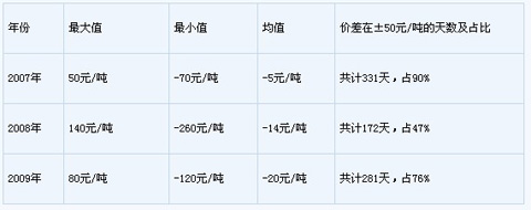 (2)山西廠庫相對于基準交割地的廠庫和倉庫貼水200元/噸 第一,山西在我國焦炭貿易中屬于凈流出方,本地交通不便,適當設置貼水可以防止貿易逆流。 山西雖然產焦多,但本地消化能力弱,每年焦炭產量的78%需要外運到山東、天津、河北、江蘇等地進行消化。其中,通過鐵路方式出省的占51%,汽車運輸占49%。鐵路運力緊張一直是山西省面臨的難題,而汽運也受到山西地理條件的影響。山西省山地、丘陵多、平原少,東依太行山,西靠中條山,并與呂梁、太岳等山脈互為犄角。近年來,雖然山西的公路、鐵路設施和條件得到較大改善,為焦炭和煤炭的外運提供了有效保障,但是目前尚不具備發(fā)生大規(guī)模交割的條件。由于山西本身處于焦炭貿易流向的流出方,通過對山西地區(qū)適當貼水,可以避免山西境外焦炭流入山西,防止出現(xiàn)貿易逆流現(xiàn)象和大規(guī)模交割情況,有效防范交割風險。 第二,相對于基準交割地貼水200元/噸比較適宜。 從山西與基準交割地的價差情況來看,2008年前,河北、山東的焦炭價格要高于山西200元/噸左右,但金融危機之后,一是受鋼鐵工業(yè)焦炭需求疲軟影響,同時山西省的鐵路和公路運輸效率也大幅提高,使山西與山東、河北之間的價差有縮小的趨勢。根據(jù)2009年1-9月數(shù)據(jù),河北的焦炭價格比山西的平均高約90元/噸,山東比山西平均高約50元/噸左右,基本反映了地區(qū)間的運輸成本。 注:河北、山東、山西價格分別取自唐山、濰坊和運城 從山西到基準地之間的運輸綜合費用情況來看,山西到天津、唐山的鐵路運費約為90元/噸左右,到連云港的鐵路運費約為105元/噸,山西到兩地的汽車運費在150元/噸左右,見表5。加上請車費等其他費用后,鐵路運輸費用與公路運輸費用基本接近。這樣,運輸加上雜項的綜合費用最高接近200元/噸。