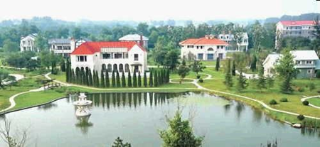酒店的介紹里提到,“占地1050畝,其中800畝為森林公園”,如此大面積的公園竟是酒店的附屬設施。酒店除了208套客房外,還有“中、歐、日、意式等風格各異的高檔別墅9幢……”。