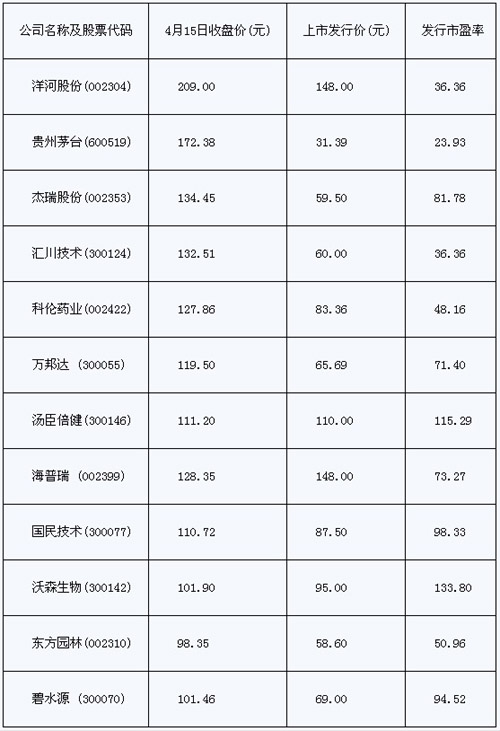 我們發(fā)現(xiàn),以截止到4月19日收盤價超出一百元的11只股票為例,部分百元股如海普瑞、國民技術(shù)、沃森生物、碧水源等自發(fā)行以來就已經(jīng)連續(xù)陷入調(diào)整態(tài)勢,股價不能得到有力的支撐。高成長性不能得到延續(xù),股價未見起色,這里有公司經(jīng)營層面的問題,也有市場投資者認(rèn)可的問題,還有新股發(fā)行機制存在的問題。