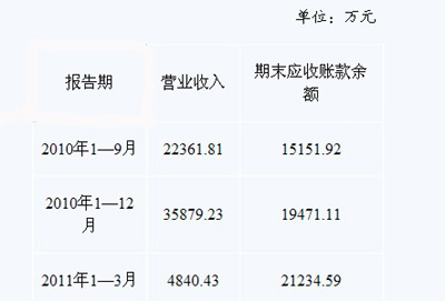 根據(jù)上述資料,劉先生算了一筆賬:截至2011年一季度末沃森生物賬齡1-6個月的應(yīng)收賬款余額為21234.59×92%=19535.82萬元。假設(shè)一季度營業(yè)收入全部形成應(yīng)收賬款,則2010年第四季度新形成的應(yīng)收賬款為19535.82-4840.43=14695.39萬元。而沃森生物去年第四季度實現(xiàn)營業(yè)收入為13517.42萬元(35879.23-22361.81)!拔稚锶ツ甑谒募径刃掳l(fā)生的應(yīng)收賬款竟然高于當(dāng)季的營業(yè)收入,另人匪夷所思!眲⑾壬f。