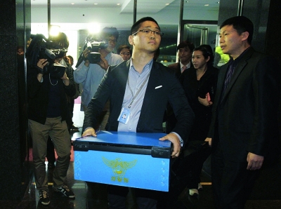 圖為:3日,在韓國(guó)首都首爾的谷歌公司辦公室,一名警察搬運(yùn)在此沒收的物品。新華社/路透