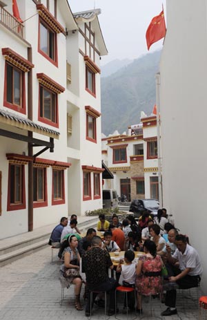 步行在以土黃色為基調(diào)的新映秀鎮(zhèn)的大街小巷,坐在街邊竹椅上曬著太陽(yáng)的老人、奔跑在巷道嬉戲歡快的孩童、忙著裝修或打掃收拾新房的男女,無(wú)不散露出一種溫暖。汶川縣縣長(zhǎng)張通榮對(duì)記者說(shuō),我們用藏、羌、漢等多民族風(fēng)格建造民房盡力讓它不單調(diào);我們沿河做景觀、做綠化,盡力讓過(guò)境湍流能為小鎮(zhèn)帶來(lái)生趣、祥和;我們建造抗震救災(zāi)紀(jì)念館,盡力營(yíng)造“祭奠逝者、感恩愛(ài)者、溫暖生者”的氣氛……讓“災(zāi)難的小鎮(zhèn)”變成一個(gè)“溫情的小鎮(zhèn)”。