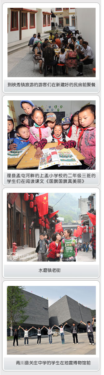 盡管在汶川特大地震發(fā)生后,每年都會去幾次映秀鎮(zhèn),但幾天前的映秀之行卻讓記者感到穿越的眩暈:在這個四面環(huán)山、兩河匯流的一平方公里場鎮(zhèn)上,川西民居、藏寨風情、羌式建筑交錯相融,民族風情的民居、現(xiàn)代風格的場館、寬敞平整的街道也沿河順勢展鋪開來,從震后的滿城廢墟到今天的新城俏麗,一種穿越時空的眩暈感油然而生。[詳細] |