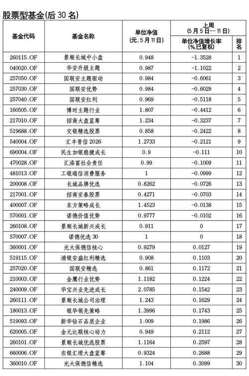 本周最差收益股票型基金排名