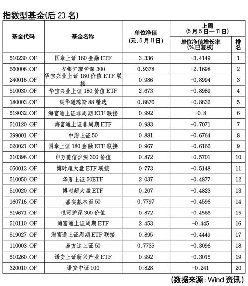 國(guó)泰基金管理有限公司旗下的,2011年3月底設(shè)立的的國(guó)泰上證180金融ETF以-3.41%的凈值增長(zhǎng)率成為本周(5月5日-11日)指數(shù)型基金收益倒數(shù)第一,其今年以來(lái)年漲幅為-4.1%。