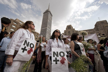 4月6日,在墨西哥首都墨西哥城,抗議者身帶標(biāo)語參加游行。抗議困擾國家經(jīng)濟(jì)社會(huì)發(fā)展的毒品暴力活動(dòng)。新華社/法新 |