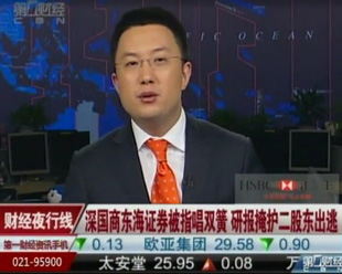 | 315pk:東海證券、國泰君安在股市里非法操縱股價的問題最嚴(yán)重。許多股民在就發(fā)現(xiàn)了這個問題。監(jiān)管層至今才發(fā)現(xiàn),可見這是什么樣的監(jiān)管隊(duì)伍。