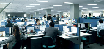 | 大連華信計算機有限公司職工正在工作