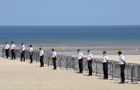 5月25日,警方在法國(guó)北部海濱小鎮(zhèn)多維爾封閉海灘。八國(guó)集團(tuán)峰會(huì)將于5月26日至27日在多維爾舉行。法國(guó)共投入了各類安保人員約1.2萬(wàn)名,以確保會(huì)議安全。