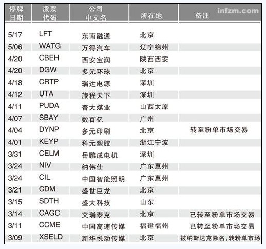 3月份以來被交易所停牌的中概股