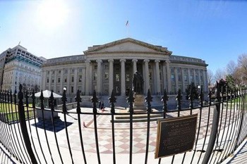 圖為美國(guó)財(cái)政部外景。資料照片 |