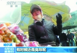 在哈藥總廠附近,即使在夏天,也仍然有人要戴口罩遮擋臭味。據(jù)央視視頻截圖