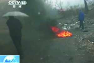 哈藥總廠制劑廠焚燒垃圾,有時(shí)不分地點(diǎn),隨意進(jìn)行。據(jù)央視視頻截圖 |