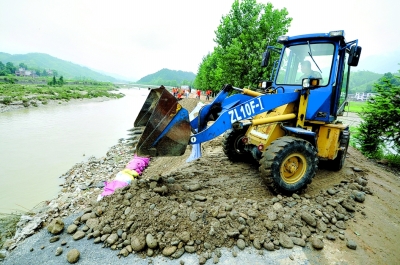 圖為6月12日,九江市公路管理局武寧公路分局調(diào)集推土機搶修公路。(新華社記者 周科/圖)