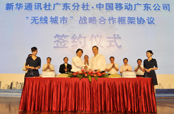 論壇當(dāng)日,廣東省經(jīng)信委與廣東移動(dòng)簽署了“無(wú)線城市”戰(zhàn)略合作框架協(xié)議。為貫徹落實(shí)新華社總社與中國(guó)移動(dòng)通信集團(tuán)公司的戰(zhàn)略合作精神,新華社廣東分社與廣東移動(dòng)也同期簽署了戰(zhàn)略合作協(xié)議,各方表示將進(jìn)一步合力推進(jìn)廣東“無(wú)線城市群”建設(shè)。與此同時(shí),廣東移動(dòng)“無(wú)線城市”也于當(dāng)日正式發(fā)布。據(jù)悉,廣東移動(dòng)的“無(wú)線城市”覆蓋全省,業(yè)務(wù)類別涵蓋無(wú)線政務(wù)、便民服務(wù)、商家優(yōu)惠、掌上娛樂(lè)、企業(yè)應(yīng)用、旅游資訊和時(shí)事新聞等多個(gè)領(lǐng)域,在試運(yùn)營(yíng)階段就已經(jīng)吸引了社會(huì)各界的關(guān)注與體驗(yàn),今年前5個(gè)月累計(jì)訪問(wèn)量已突破2000萬(wàn)人次。