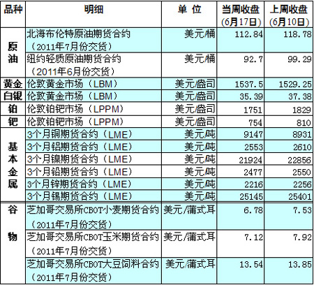 國際大宗商品期貨價格明細(xì)表[2011-06-20]
