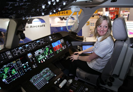 6月20日,在巴黎航展上,一名外國航空公司的工作人員在C919客機(jī)駕駛室參觀。 當(dāng)日,第49屆巴黎航展開幕,中國自主研制的大型客機(jī)C919樣機(jī)在航展亮相,這也是C919大型客機(jī)1:1展示樣機(jī)(機(jī)身前段)首次在國際最具影響力的航展上亮相。