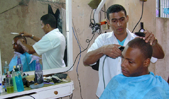 在古巴從事理發(fā)的個(gè)體經(jīng)營(yíng)者。記者 殷永建