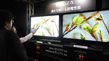 6月15日,東芝公司在日本東京總部展示了內(nèi)置蓄電池的節(jié)能電視“REGZA 19P2”。 為迎接節(jié)電之夏,日本家電企業(yè)相繼推出節(jié)能家電,搶占夏季市場。新華社發(fā)(關(guān)賢一郎