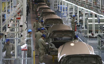 | 吉利汽車流水線一角。新華社發(fā) |