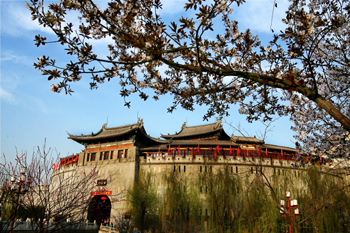 河南洛陽老城麗京門在盛開的鮮花映襯下更顯得雄偉壯觀。新華社發(fā) |