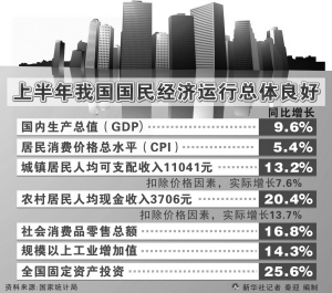 上半年“9.6%+5.4%”的組合,對于中國經(jīng)濟(jì)而言,不僅意味著經(jīng)濟(jì)增長繼續(xù)保持穩(wěn)定,更意味著價(jià)格上漲將形成倒逼機(jī)制,加快結(jié)構(gòu)調(diào)整和發(fā)展方式轉(zhuǎn)變。