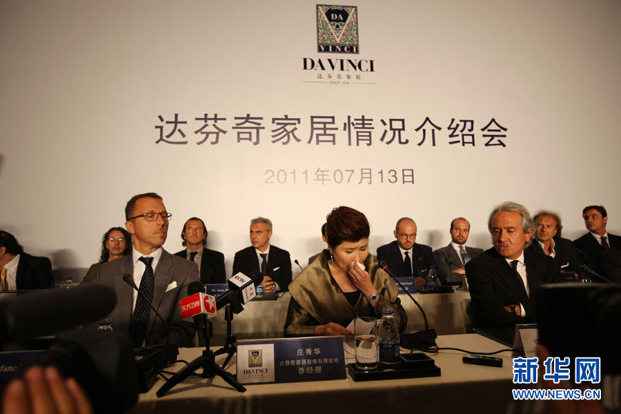 13日,“達(dá)芬奇”首度于北京召開新聞發(fā)布會,并在上海、廣州、杭州、重慶、成都、深圳等6地設(shè)立分會場進(jìn)行同步直播,“達(dá)芬奇”欲再次強(qiáng)調(diào)自己的“意大利身份”時,卻因為一位消費者起身大聲質(zhì)疑并摔門而去而引發(fā)騷動。隨后,“達(dá)芬奇”總經(jīng)理潘莊秀華含淚痛哭,并間接承認(rèn)其與東莞長豐公司有過三次合作。她還無意中說出,達(dá)芬奇旗下代理的美國品牌好萊塢系列產(chǎn)自東莞。