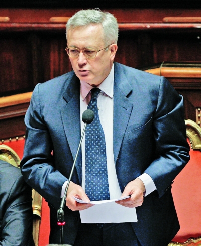 圖為意大利經(jīng)濟部長特雷蒙蒂14日在參議院就財政緊縮計劃發(fā)表講話。