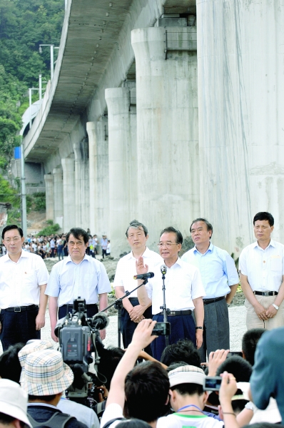 7月28日,國務(wù)院總理溫家寶在溫州察看了“7·23”甬溫線特別重大鐵路交通事故現(xiàn)場,悼念遇難者,看望受傷人員,對傷亡人員家屬表示深切慰問。